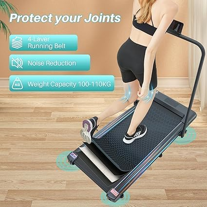 Designed with portability in mind, the treadmill can be folded and stored when not in use. Its slim, lightweight construction ensures you can move it easily and set it up wherever you need a quick workout.