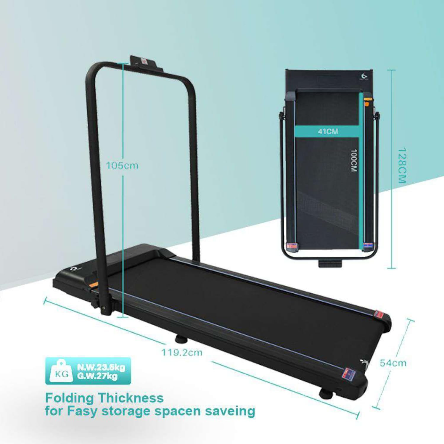 Equipped with a handle bar for stability, this treadmill ensures safe usage during walking or running sessions. Its sturdy construction and anti-slip belt provide a reliable and comfortable exercise experience.